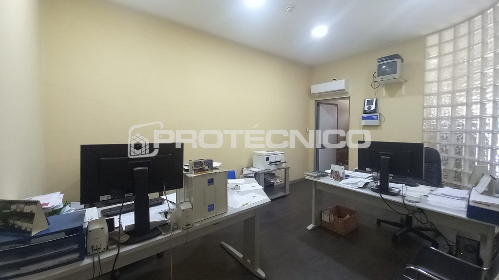 O armazém dispõe também de uma arrecadação, instalações sanitárias e um mezanino, que pode ser utilizado para apoio logístico ou como área adicional de escritório.