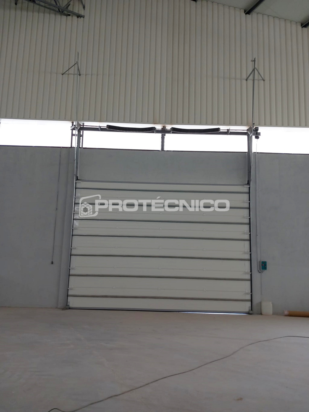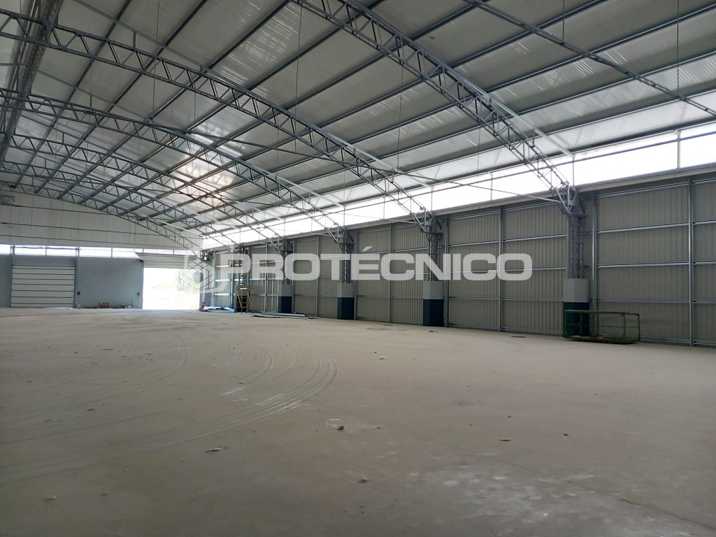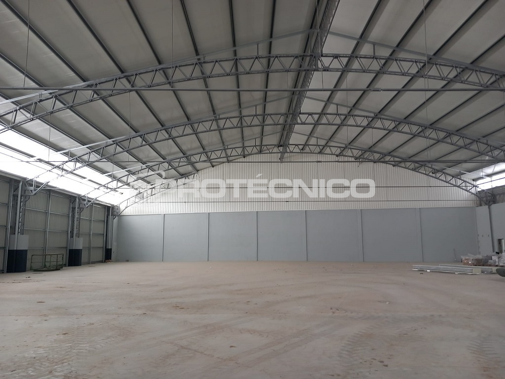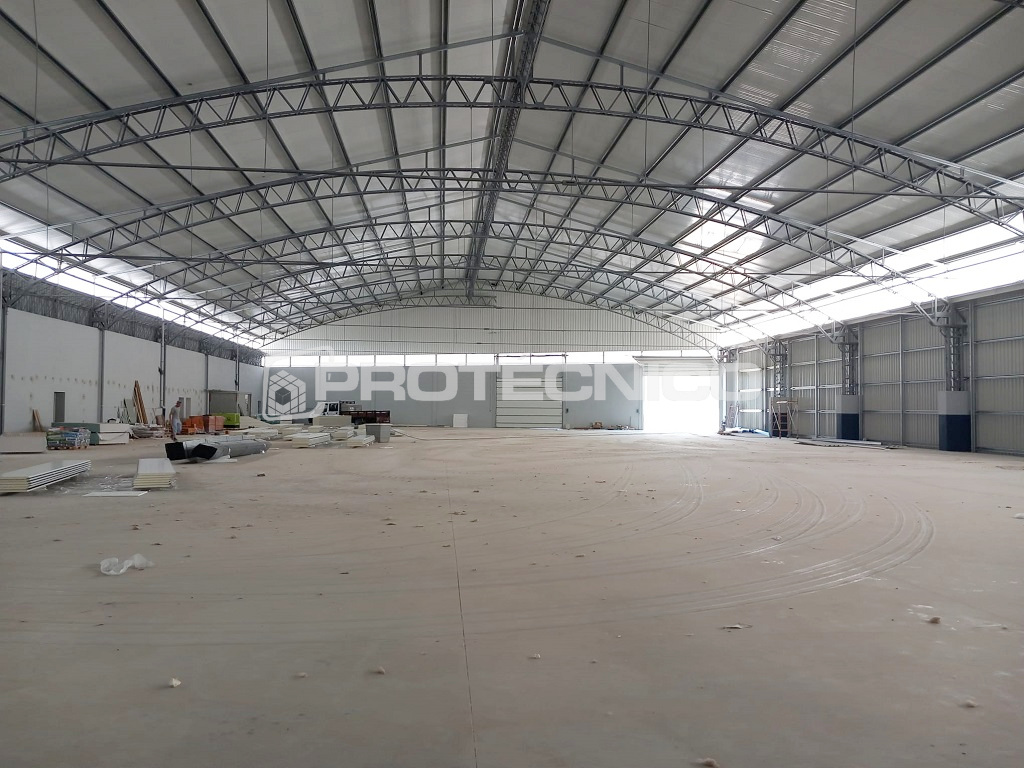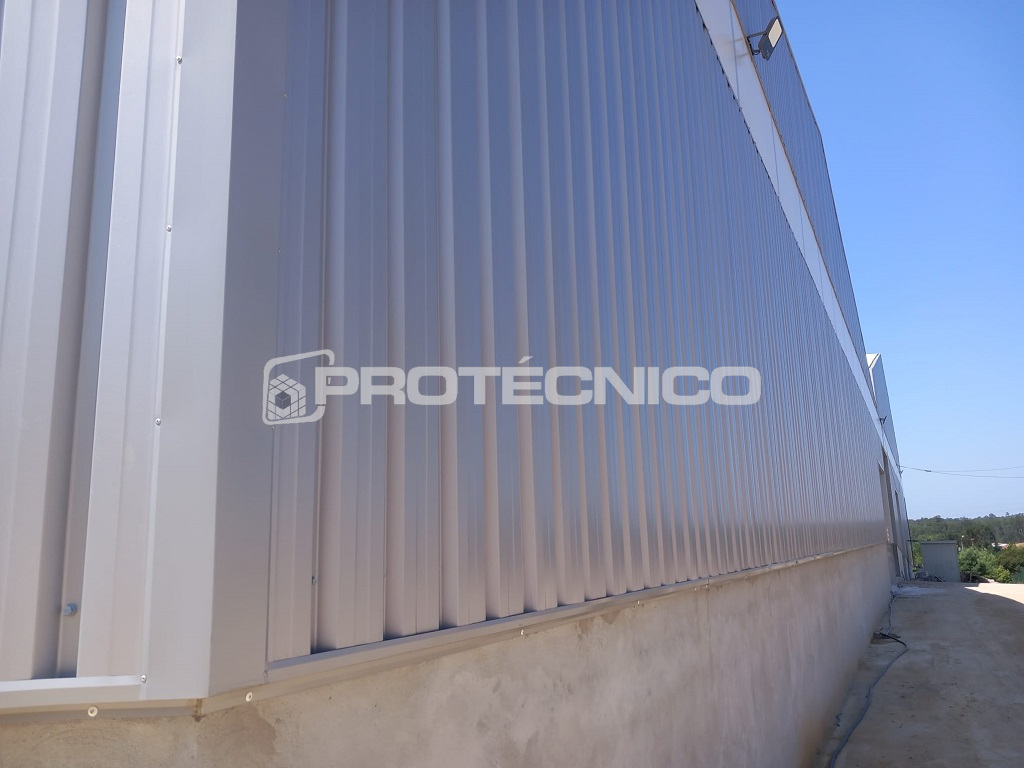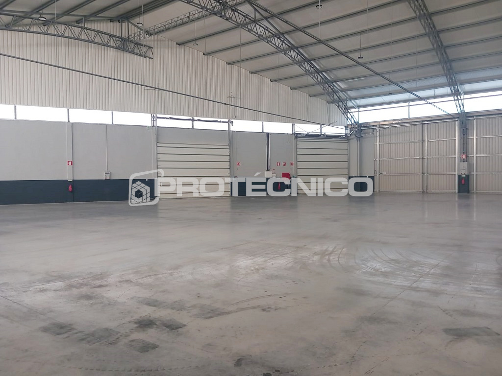 Com 5 metros de pé direito útil e 12 metros de pé direito ao cume, o armazém dispõe de 1 portão seccionado automatizado 5m x 5m, cobertura em painel sandwich e, ainda, de pavimento em betão com fibras metálicas (16 toneladas m2).