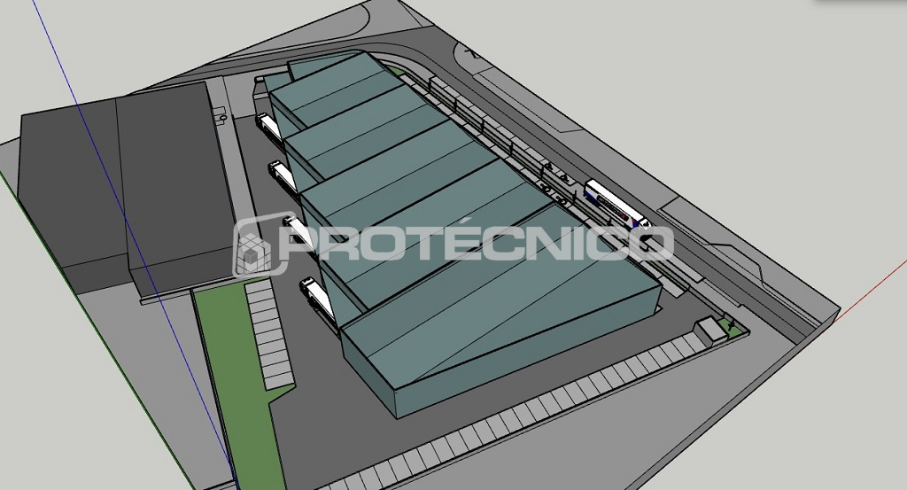 A nave dispõe de cobertura em painel sandwich e alguns painéis translúcidos o que lhe proporciona iluminação natural.